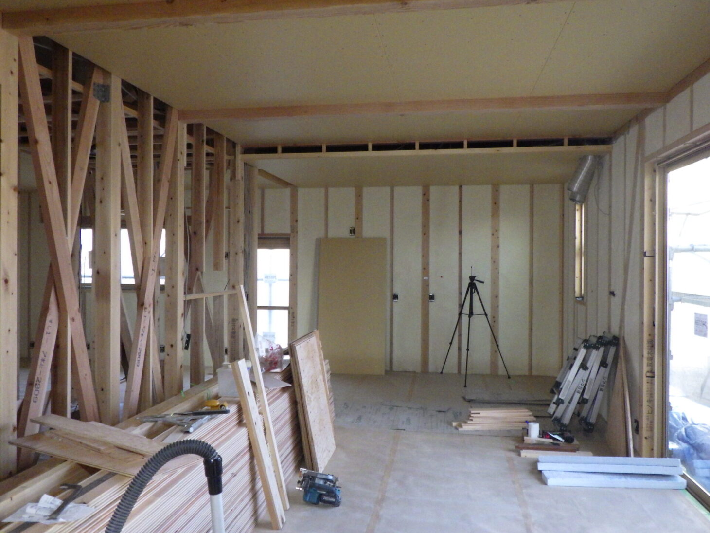 完成してからでは隠れてしまう、構造や断熱の様子をじっくり見ていただくためです。