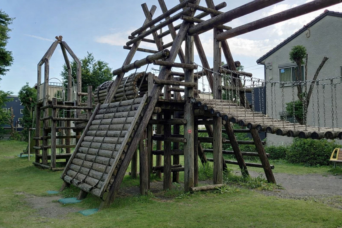 公園にあった遊具は、自然の木を使った木造のもの。