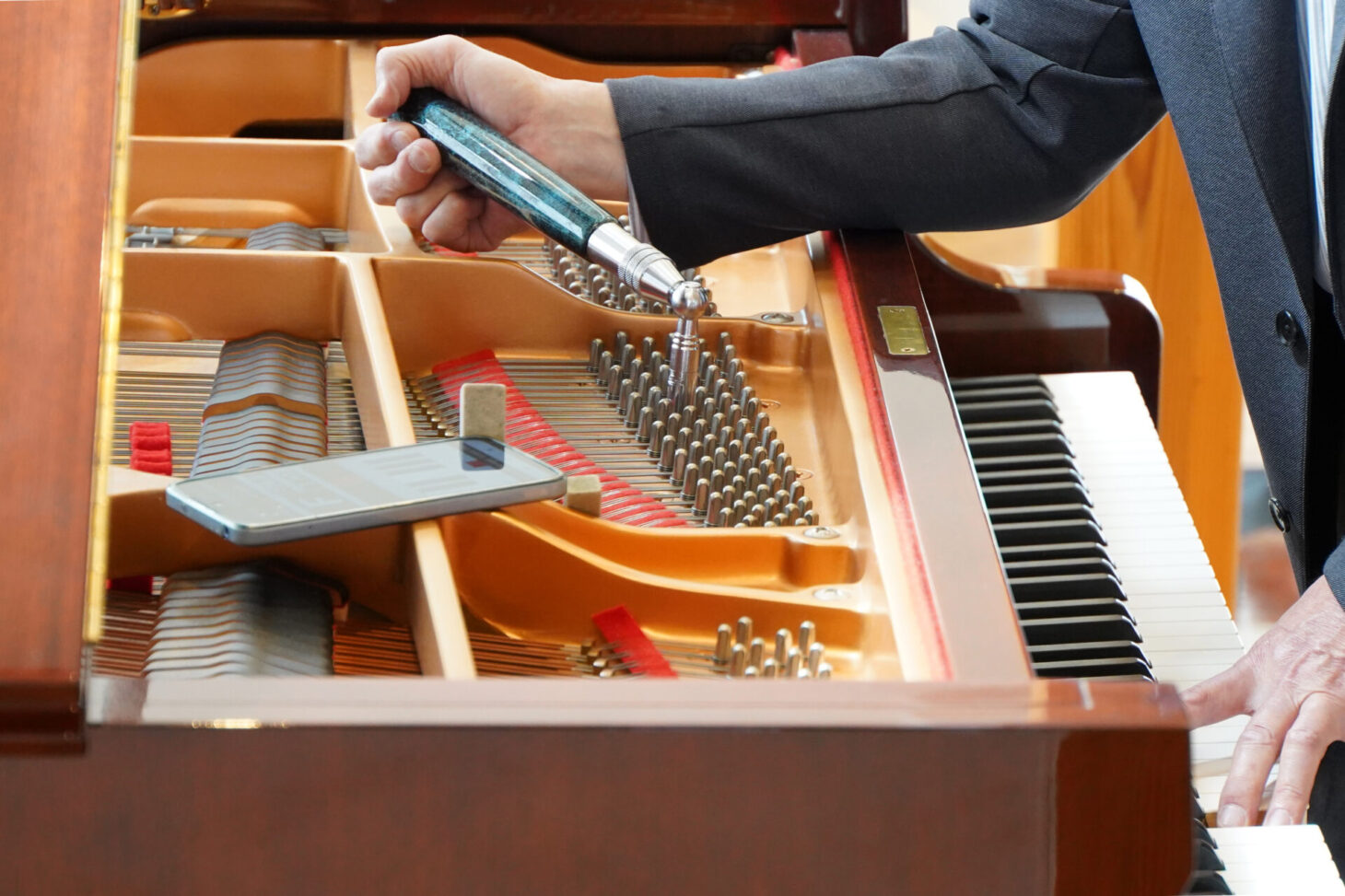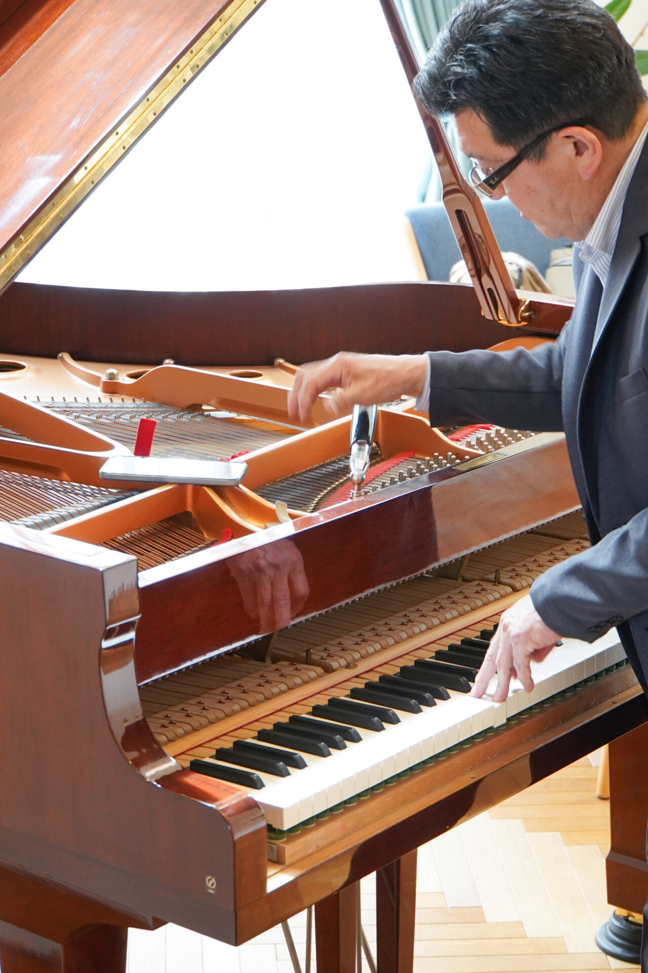 ピアノの調律を間近で見るのは初めてでしたが、スーツ姿の調律師の方が来場され、