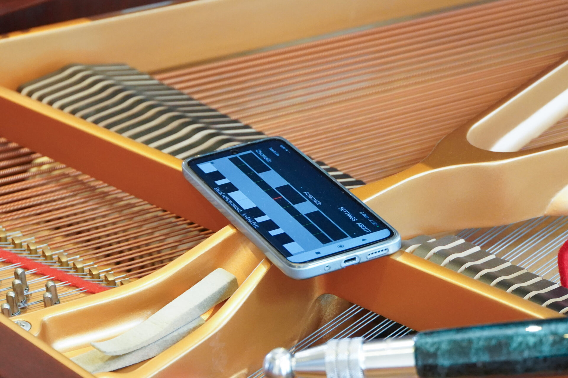 専用の道具で一音一音丁寧に弦の張り具合を調整していきました。