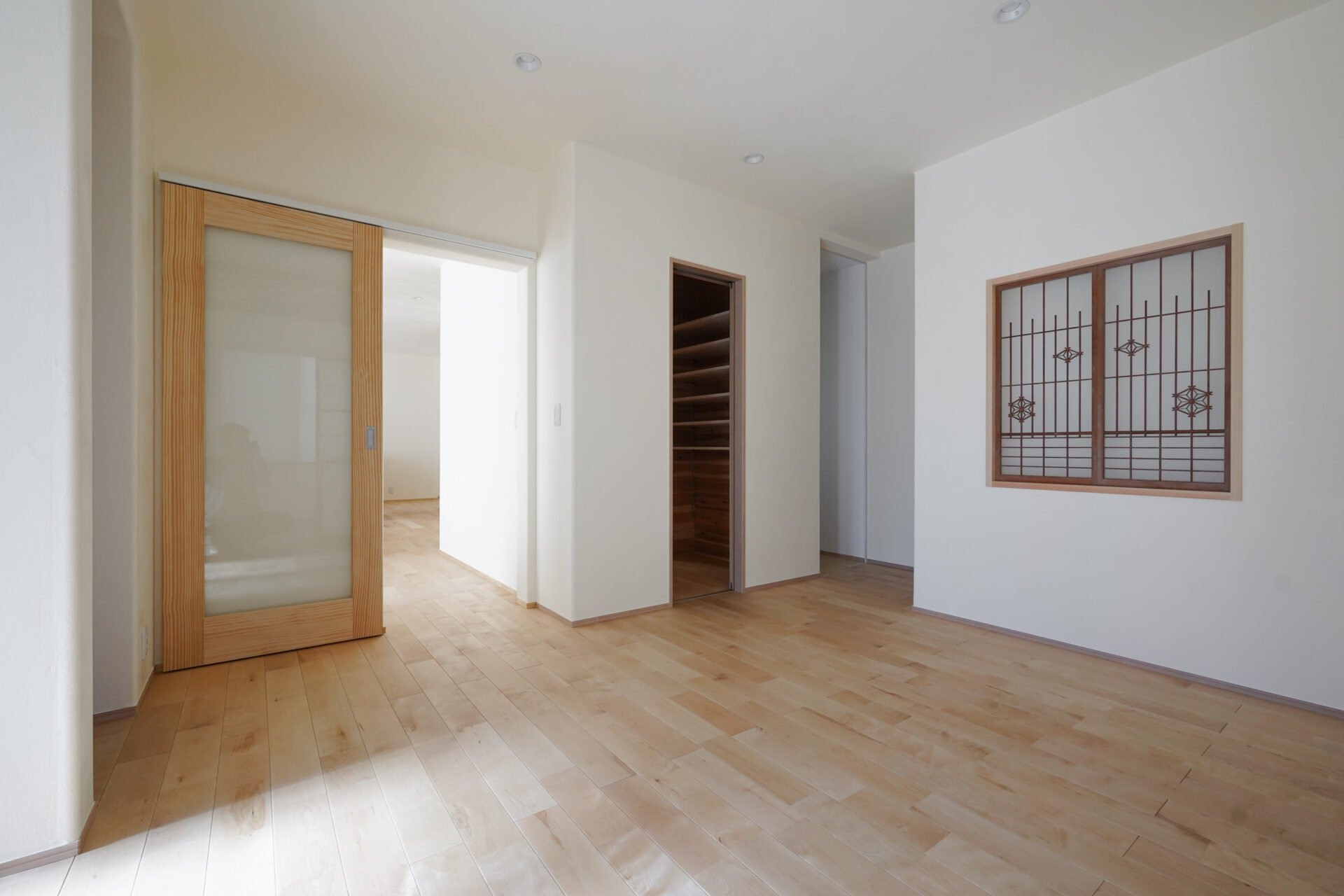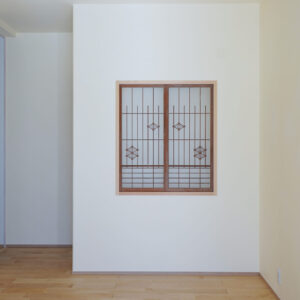玄関から右手に続く土間の先には、旧家で使われていた雪見障子をあしらった和室を配置。縁側を介して客間としても使えるため、急な来客にも柔軟に対応できる空間です。