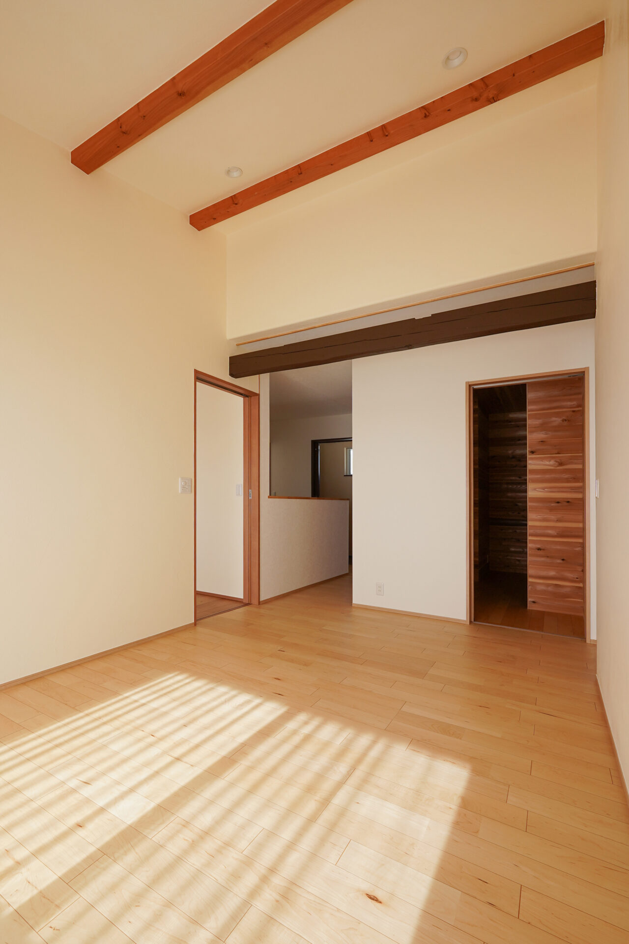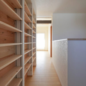 小屋裏空間を有効活用して設けた約8帖の収納室は、季節物の衣類や普段あまり使わない物をまとめて収められ、住まい全体の収納力を高めています。