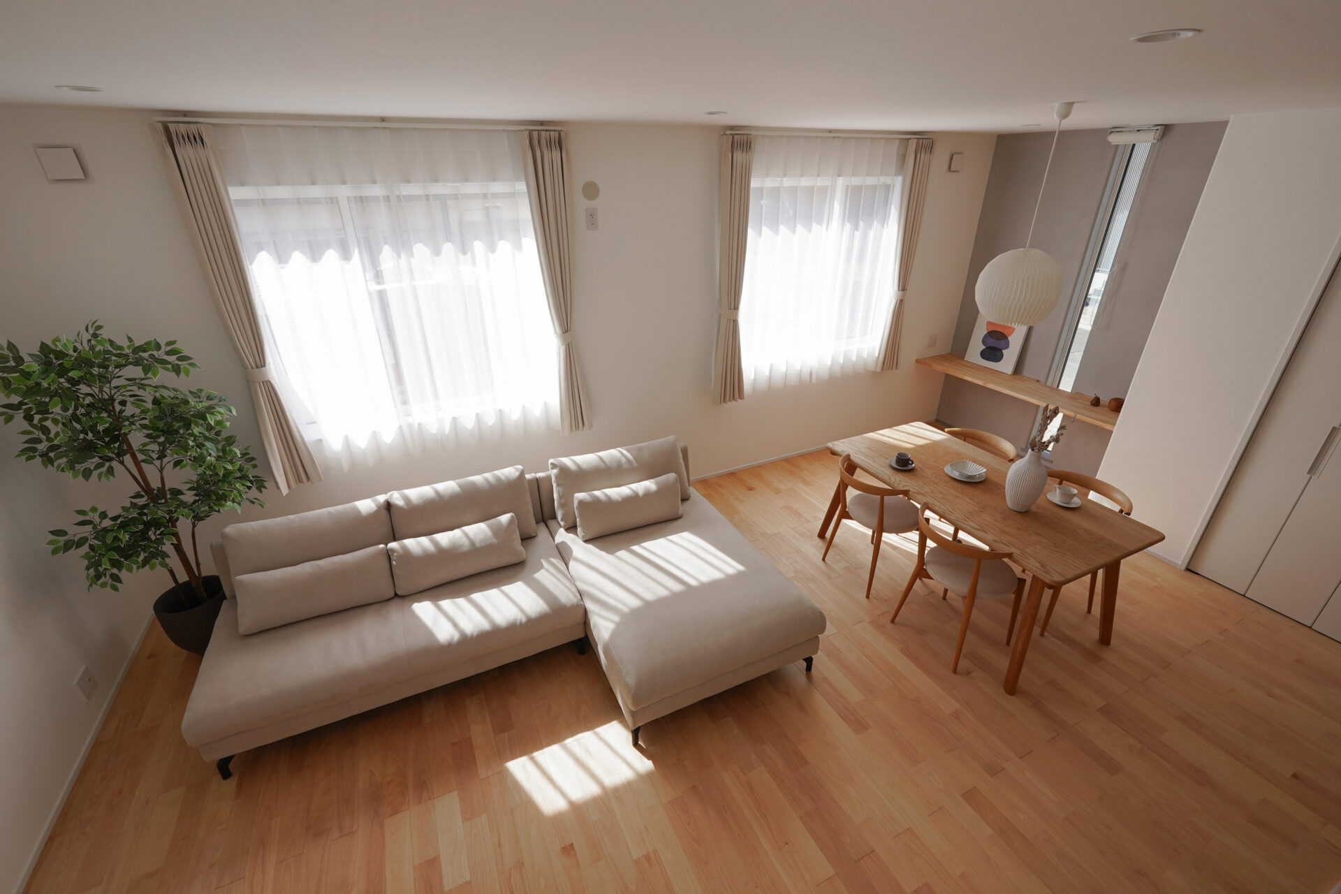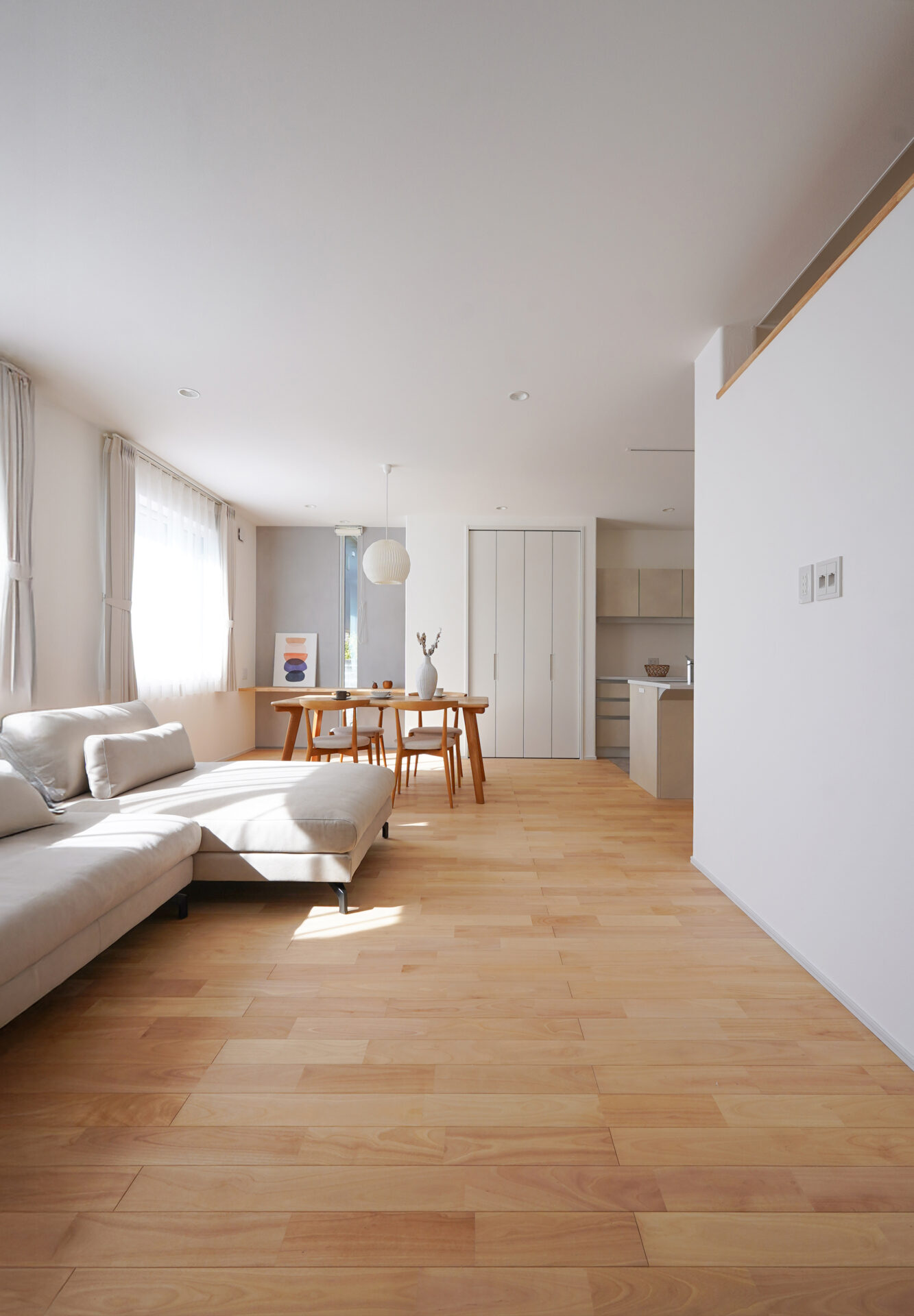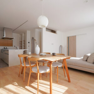 親世帯と子世帯のつながりを大切にしながら、生活動線を丁寧に設計されたS様邸。自然素材がもたらす上質な空気に包まれ、それぞれの暮らしが美しく調和する、理想の二世帯住宅が完成いたしました。