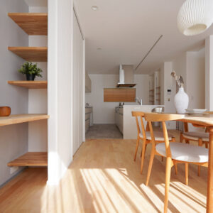 キッチンの先には、ご夫婦の寝室と6帖の洋室を配置。将来を見据えた動線計画により、プライベートな時間を穏やかに重ねられる心地よい空間です。